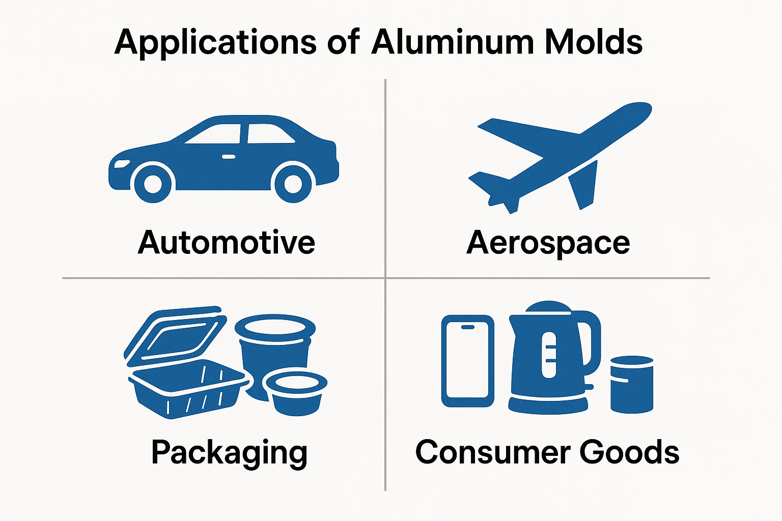 Алюминиевые формы нашли свой путь в разнообразные отрасли, обусловленные необходимостью более быстрых, более экономически эффективных и адаптируемых производственных процессов. Их уникальные свойства делают их предпочтительным выбором для компаний, стремящихся оптимизировать производство и быстро вывести новые продукты на рынок.