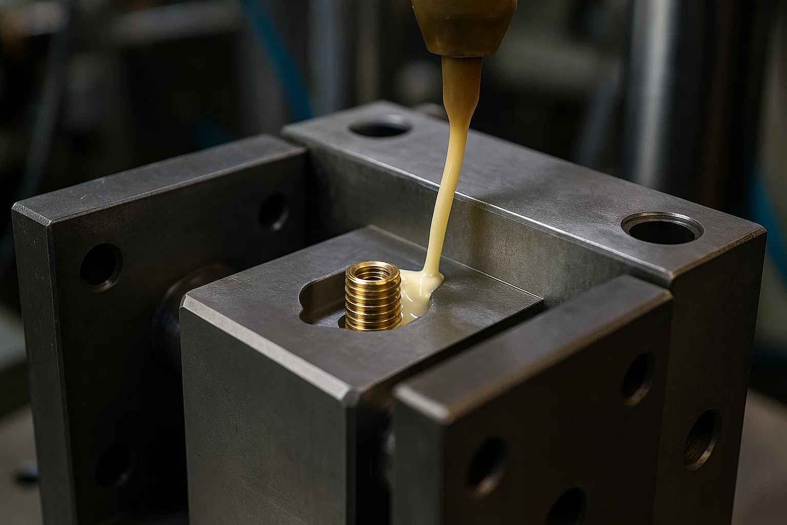 Внедрение материала: Расплавленный пластик (термопластичный или термосет) вводится под высоким давлением в полость формы, текущая вокруг и инкапсулирует вставки. Материал заполняет все пустоты, создавая прочную связь или механическую блокировку с вставкой.