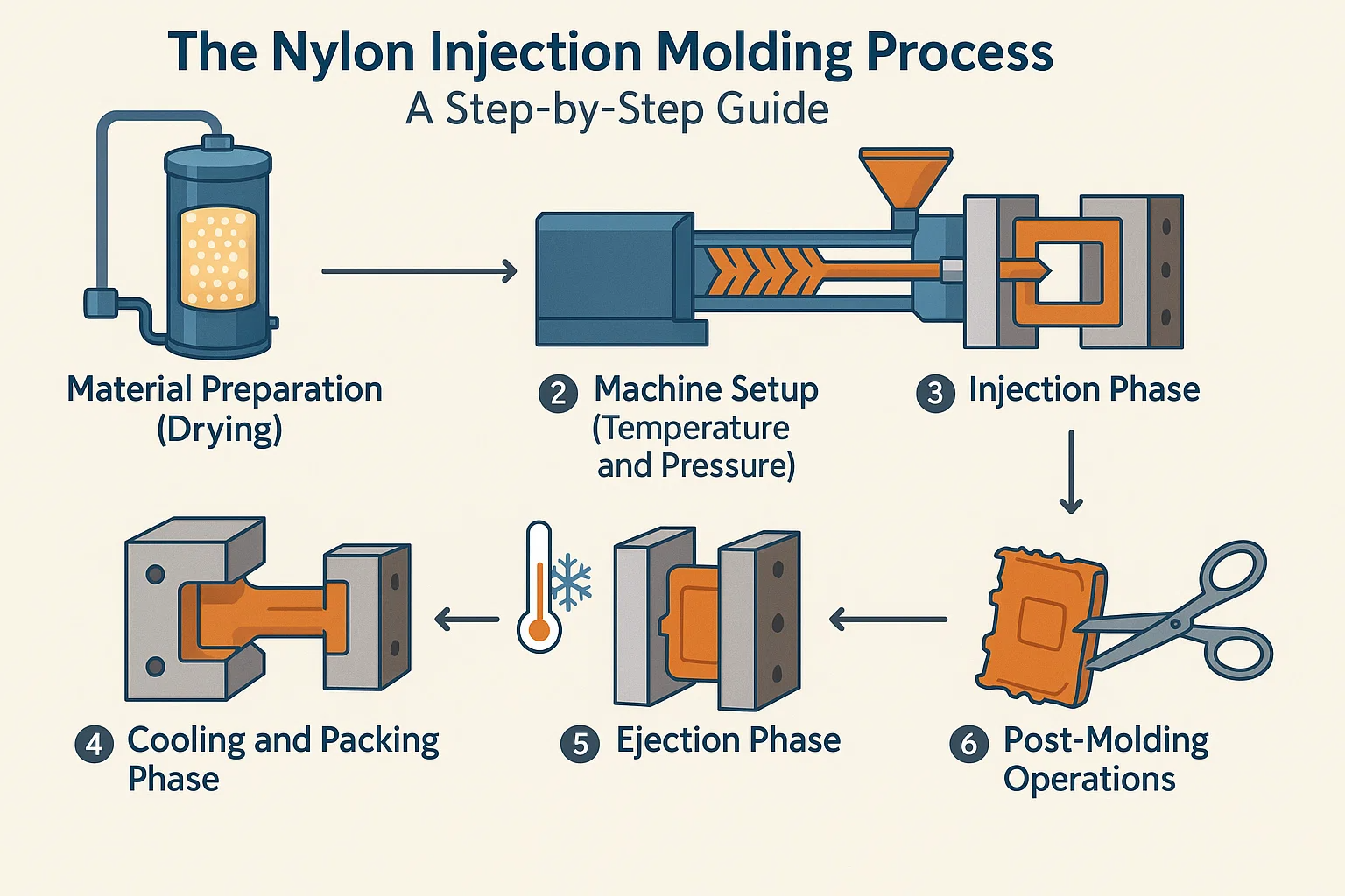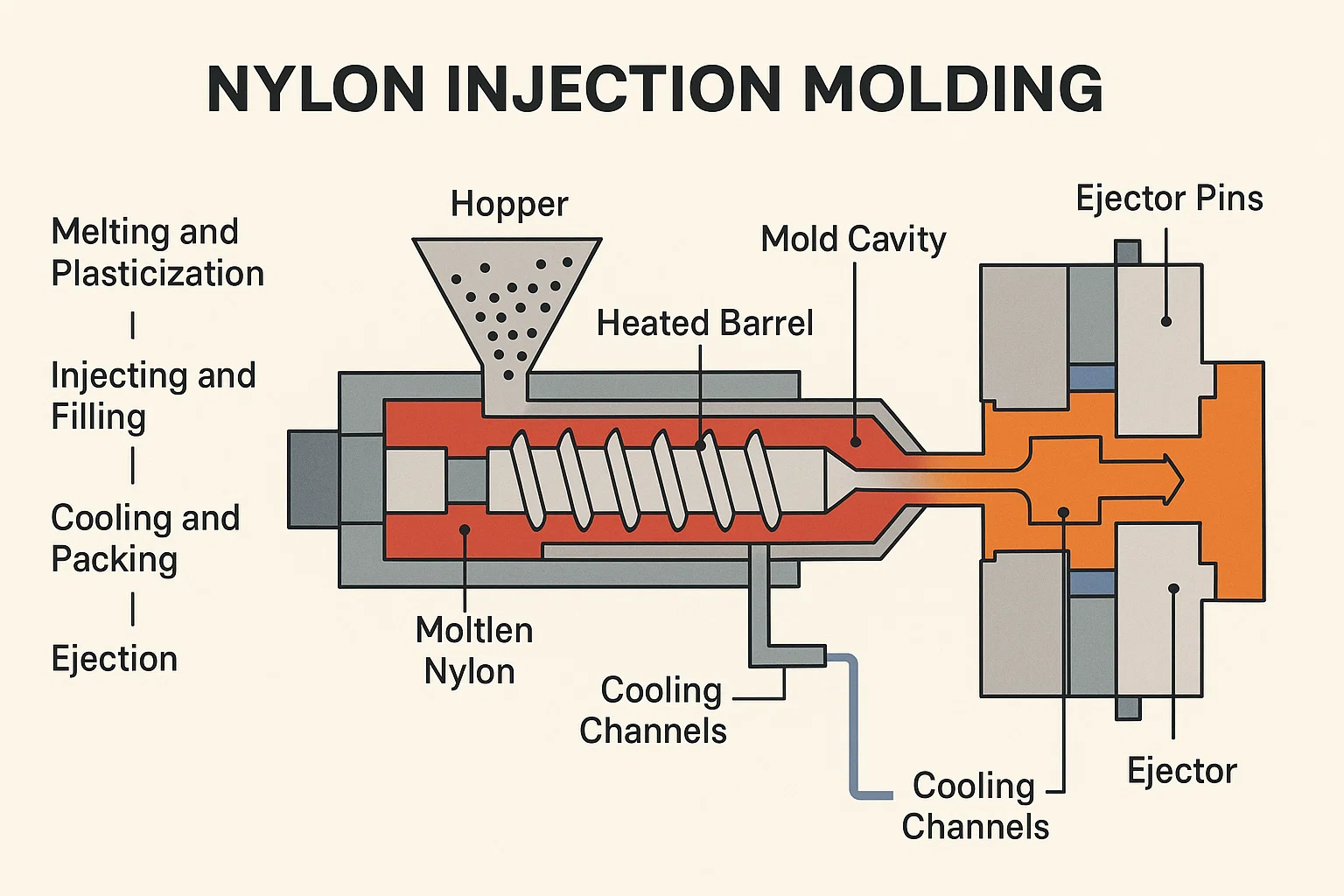 Ключевые этапы литья под давлением нейлона
