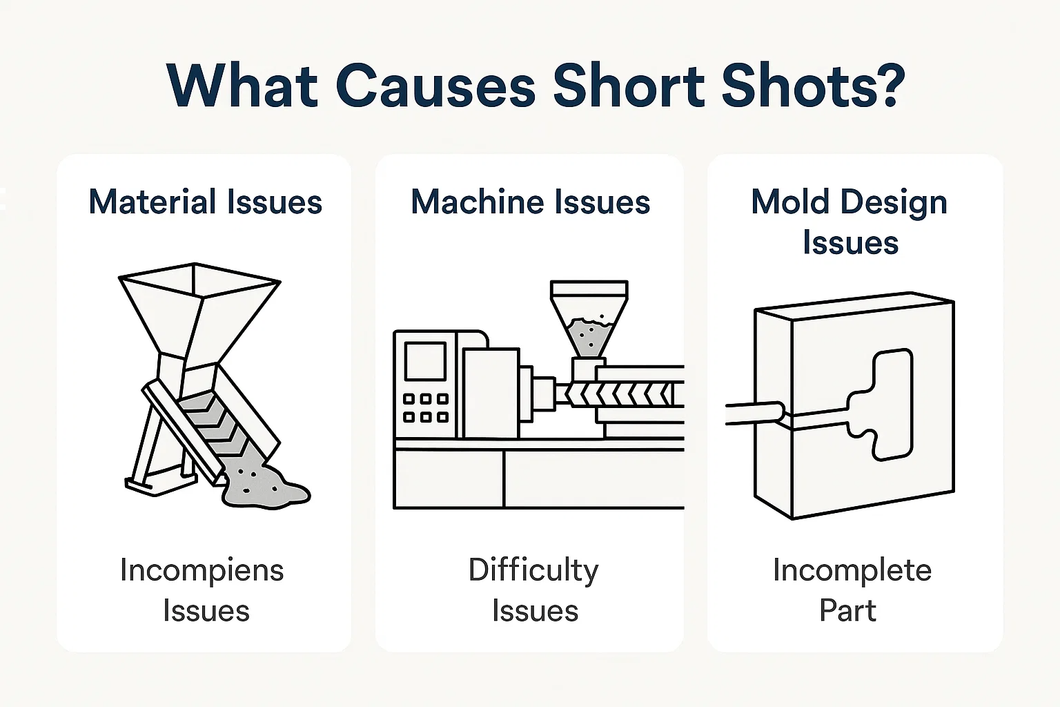 Даже с идеальными настройками материала и машины, плохо спроектированная плесень может сделать невозможным производство полной части. Эти проблемы часто являются наиболее сложными в решении, потому что они требуют физических модификаций для инструментов.