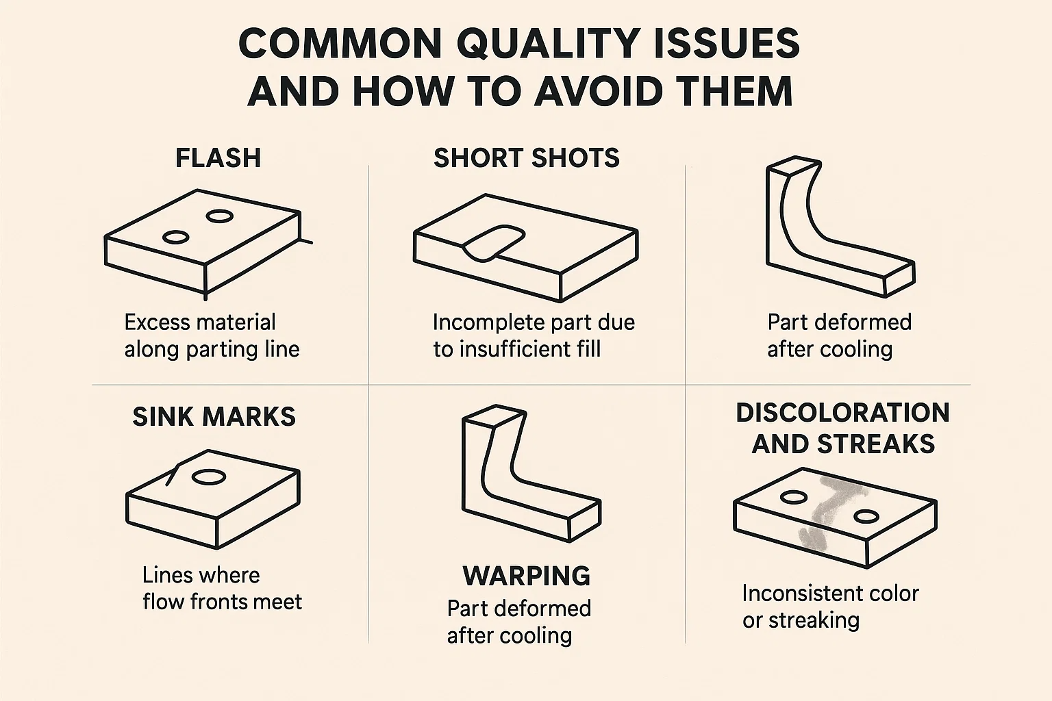 - Рассмотрим самообеспечение или универсальные части: Проектирование деталей, которые можно использовать взаимозаменяемо (например, верхняя и дно, которые являются идентичными), может уменьшить количество необходимых уникальных форм.
