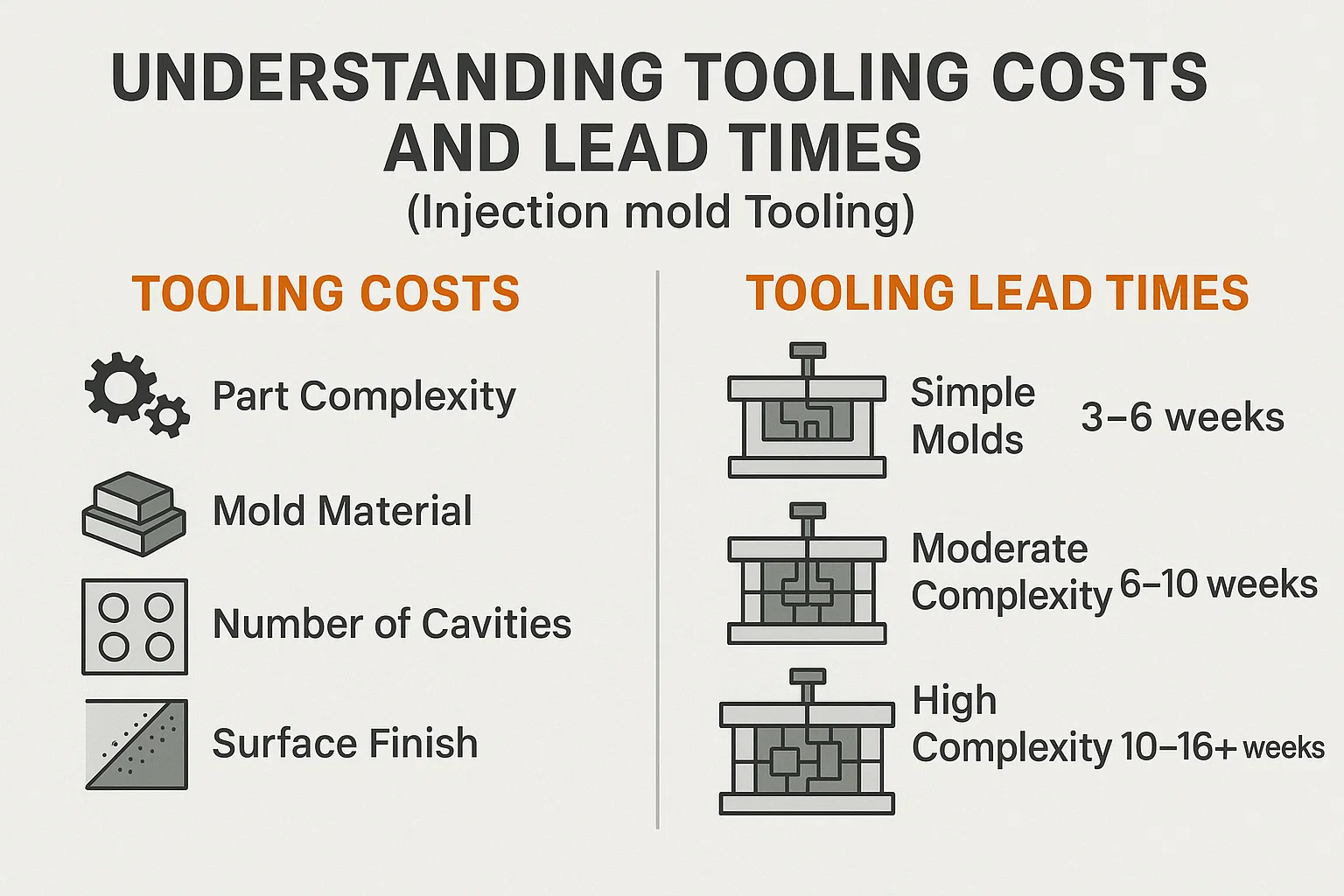 - Время выполнения инструмента (как обсуждалось): Это начальное, часто самое длительное, время выполнения выполнения. Как только плесень будет завершена и проверена, фактическое производство деталей может быть очень быстро.